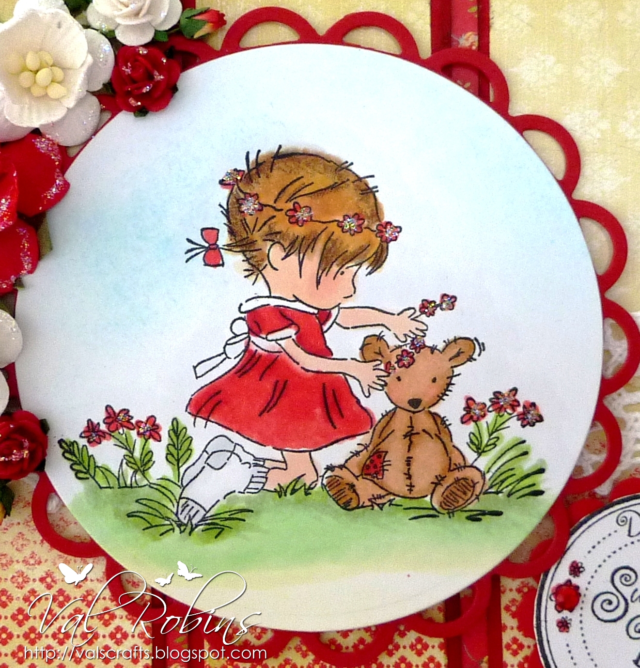 I wasvery lucky recently to be asked to join the new team at My Time to Craft, and this is my first DT piece for them. The theme for the challenge is Here Comes Summer, and I have chosen a Lili of the Valley stamp of a little girl on a swing, and lovely bright summery reds and creams to represent this. Just loving these colours at the moment.